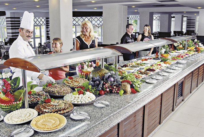 All Inclusive Plus: Frühstück (Buffet), Langschläferfrühstück bis 11 Uhr, Mittagessen (Buffet), Abendessen (Buffet), Getränke ganztägig kostenfrei (Softdrinks, Mineralwasser, Kaffee/Tee, Tischwein, Bier, lokale Getränke, Hauswein, Cocktails, Longdrinks, lokale Spirituosen, Wasser), Snacks (ganztägig), Kaffee/Tee und Gebäck (16-17 Uhr), Minibar (Auffüllung einmalig, Softdrinks, Wasser)