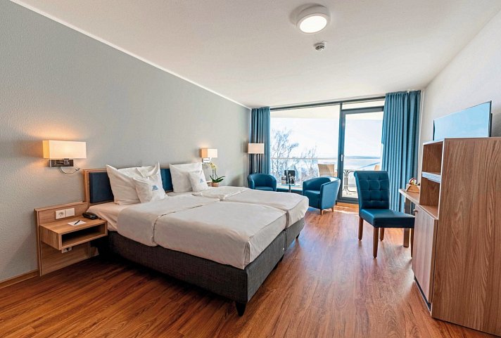 31-35 qm, Doppel, Komfort, Seeblick, Nichtraucher, Bettwäsche, Handtücher und Matratzen aus 100% Bio-Baumwolle, Sitzecke, Doppelbett, Dusche, Bademantel, Haartrockner, Klimaanlage, Minibar kostenpflichtig, Safe, TV (Sat-TV, Flachbildschirm), Wasserkocher, Balkon oder Terrasse (möbliert)