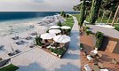 Felsstrand: öffentliche Strandbar, Sonnenschirme, Liegen, Strandtuch/Badetuch, sanitäre Anlage (Dusche)