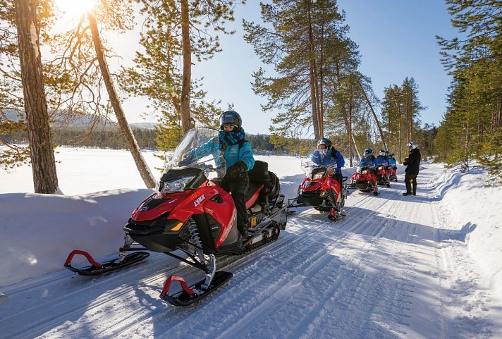 Nachdem Sie eine fachkundige Einweisung im Umgang mit dem Schneemobil, auch liebevoll „Lappenmoped“ genannt, erhalten haben, erleben Sie ein einmaliges Abenteuer. Sie fahren über den zugefrorenen See und die umliegende raue Wildnis, was Ihnen ein Gefühl von unendlicher Weite vermittelt. Dauer: ca. 4 Stunden. Am Abend besuchen Sie das Aurora Camp. Dort angekommen können Sie sich am lodernden Lagerfeuer und einem heißen Getränk aufwärmen und den Abend bei uriger Atmosphäre ausklingen lassen. Vielleicht bestaunen Sie dabei auch das einmalige Schauspiel der Nordlichter. Dauer: ca. 2,5 Stunden. (Frühstück, Mittagessen, Abendessen)