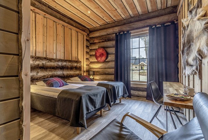 Die stilvolle, in finnischer Blockhausbauweise erbaute Lodge befindet sich in einzigartiger Lage am südlichen Ufer des Inarisees, umgeben von herrlichen Wäldern, ca. 20 Min. von Ivalo entfernt. Das Hotel ist im Besitz einer lokalen samischen Familie und nur für Erwachsene buchbar. Genießer von ausgesuchten Naturplätzen und gutem, unaufdringlichen Service mit hohem Relax-Faktor sind hier richtig. Das Restaurant im Haupthaus mit gemütlicher Lounge und großen Fenstern ist mit finnischen Design-Möbeln eingerichet und bietet eine ausgezeichnetet lokale Küche. Das Hotel verfügt über eine Lobby, Bar, WLAN sowie eine moderne Sauna und eine Rauchsauna am See.