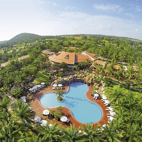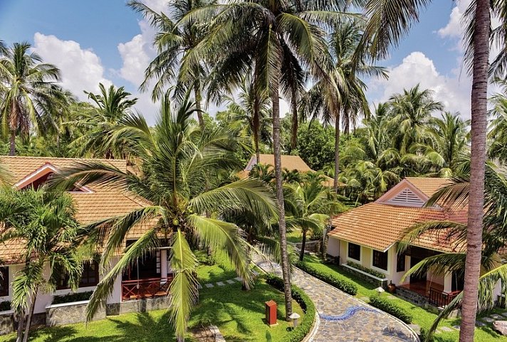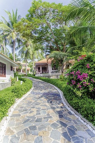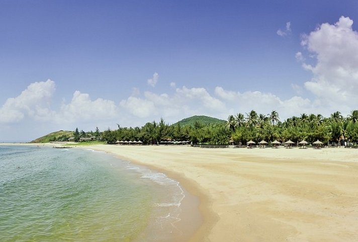 Die weitläufige Hotelanlage ist im vietnamesischem Stil mit französischem Flair vorwiegend aus natürlichen Materialien erbaut und befindet sich in Hanglage direkt am Strand.