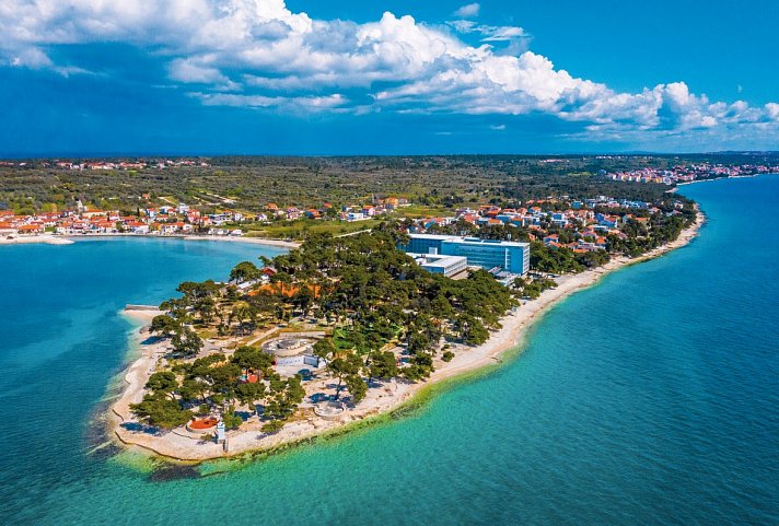 Auf einer Halbinsel gelegen, umgeben von einem duftenden Pinienwald und direkt am Strand ist es die perfekte Wahl für einen erholsamen Urlaub. Genießen Sie die schöne Landschaft und die kulinarischen Köstlichkeiten Kroatiens.
