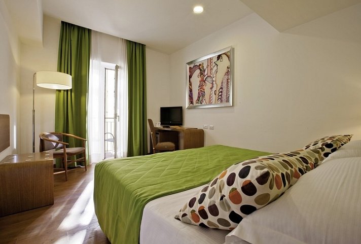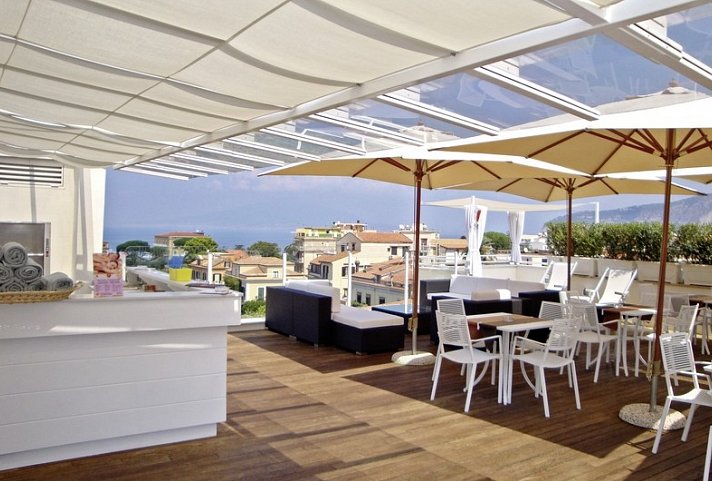 Dieses elegante Hotel liegt direkt im Zentrum von Sorrent. Die Dachterrasse bietet einen unvergesslichen Panoramablick über den Golf von Neapel sowie einen Infinity-Pool.