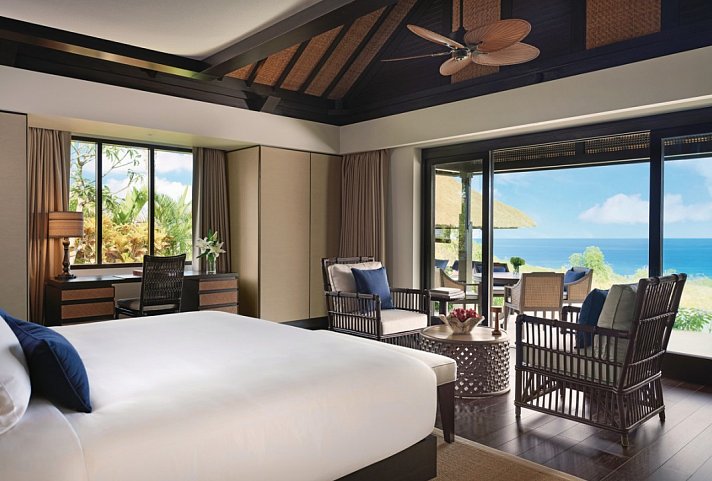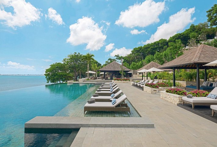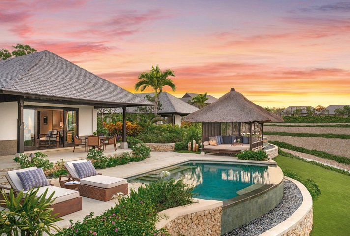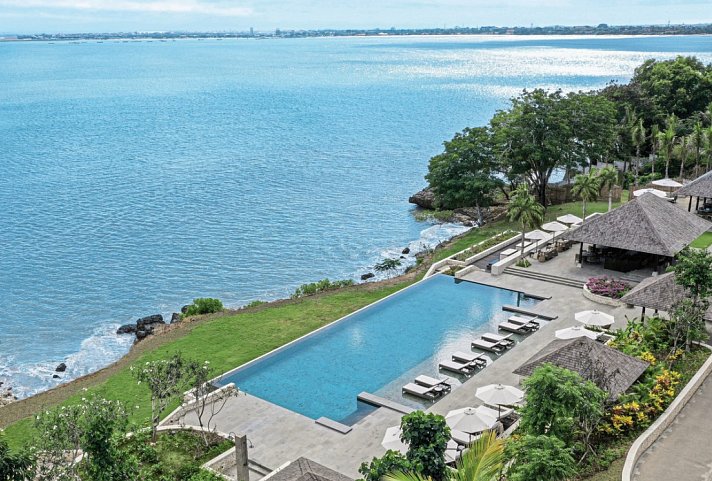 Perfekt an der Südküste gelegen bietet das Raffles Bali einen ruhigen Zufluchtsort für alle, die sich von Anmut und zeitgenössischer Eleganz angezogen fühlen..Es liegt inmitten einer 23 Hektar großen, üppigen Landschaft und spiegelt die natürliche Schönheit der Insel mit einem raffinierten Gleichgewicht aus Gelassenheit und Stil wider. Ideal um von der eigenen Terrasse die Sonnenuntergänge in der Bucht perfekt bestaunen zu können. Die luxuriöse Oase für Emotional Wellbeing liegt direkt am ca. 150 m langen Loloan Beach inmitten prächtiger tropischer Gärten, inmitten ursprünglicher Natur und ermöglicht Dank des großzügigen Areals maximale Privatsphäre für jeden Gast. Außergewöhnlich und vielfältig ist das kulinarische Portfolio, auch mit viel Freiraum für private Genuss-Erlebnisse. Entspannung auf höchstem Niveau versprechen sowohl die Anwendungen, Behandlungen und Massagen (gegen Gebühr) als auch das Kursangebot im Raffles Spa, der herrliche Infinity-Pool oberhalb des Strandes und das Fitness-Studio. Weitere Annehmlichkeiten bieten der exklusive Wellbeing-Butler-Service für ultimativen Komfort sowie Business Center, Souvenirshop, Boutique und Juwelier. WLAN im gesamten Resort ohne Gebühr. Nur 10 Kilometer vom internationalen Flughafen Ngurah Rai entfernt.