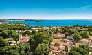 Nah am Meer mit schönem Kiesstrand und Blick auf die Altstadt von Rovinj