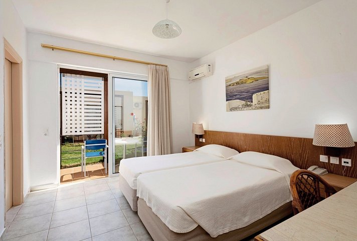 16-20 qm, Doppel, Erdgeschoss, Gartenblick, renoviert (2016), Nichtraucher, Sitzecke, Schreibtisch, Twinbett, Doppelbett, 1 Bad, Dusche oder Badewanne, WC, Haartrockner, Fliesen, Klimaanlage, Safe (kostenpflichtig), 1 TV (Sat-TV, deutschsprachiges Programm, sonstiges Programm, Smart-TV), Kühlschrank, Terrasse (möbliert)