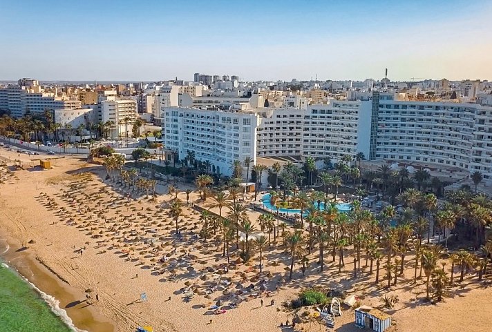 Das bekannte Hotel zeichnet sich vor allem durch seine perfekte Lage an der Strandpromenade in Sousse aus. Ein besonderes Highlight ist die eigene Brauerei im Hotel.