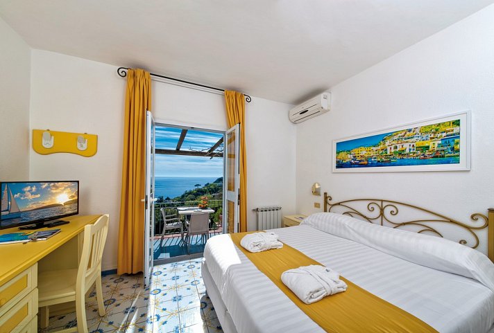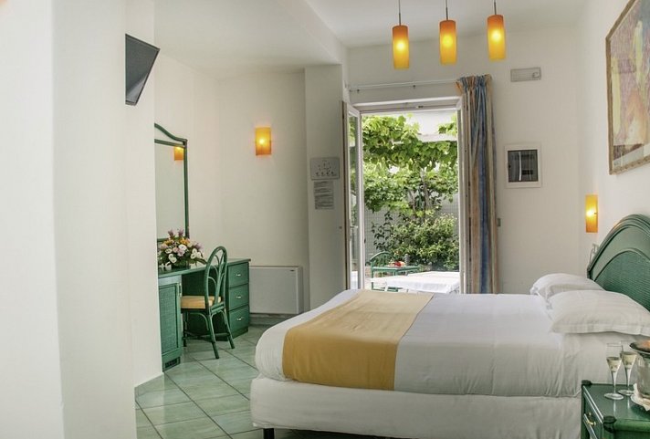 Yoga, Wellness, Tennisplatz? Hier kein Problem! Das Hotel bietet Ihnen eine große Bandbreite an Aktivitäten und verfügt über einen eigenen Thermalpark. Herrlich erholsam! Den Strand und das idyllische Sant Angelo erreichen Sie nach einem kurzen Spaziergang.