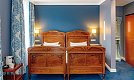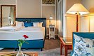 Doppel, Komfort, Hauptgebäude, Nichtraucher, Sitzecke, Doppelbett, Dusche oder Badewanne, TV (Sat-TV, Sky-TV kostenfrei), Genießertage: 2 Übernachtungen mit Frühstück, 1x 3-Gänge-Menü am Anreisetag, 1x 5-Gänge-Menü und 1x Jugendstilbroschüre