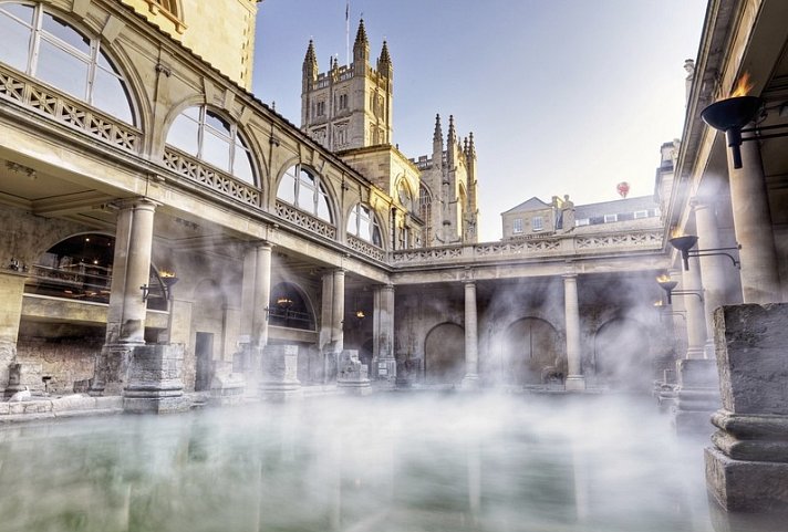 Eine der schönsten Städte Südenglands, Bath, erwartet Sie! Die zum UNESCO Weltkulturerbe gehörenden „Römischen Bäder“ mit ihren heißen Quellen sowie die architektonischen Juwelen wie der Royal Crescent machen den Ort zu einem Highlight. Bath ist auch bekannt durch die Serie Bridgerton. Es gibt spezielle Stadtführungen zur Serie (fakultativ). Hier wurden Queen Charlotte: Eine Bridgerton Geschichte, Wonka (2023), der Musicalfilm Les Misérables (2012) als Paris aus dem 19. Jh. und die Krimiserie „McDonald & Dodds“ gedreht. Auch Literaturfans kommen hier auf ihre Kosten: Jane Austens Verführung (2007) bzw. Überredung (2022) wurden hier gedreht. Später können Sie Wells mit seiner mächtigen Kathedrale und dem schönen Marktplatz mit gut erhaltenen Häusern aus dem 15.-17 Jahrhundert besuchen. Rückfahrt zu Ihrem Hotel. Ca. 140 km/ca. 3 Std. (Frühstück)
