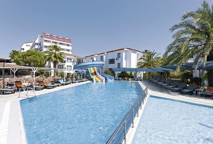 1 Pool: ca. 1.4.-6.11., Süßwasser, Wasserrutschen: 2 (stundenweise in Betrieb), Sonnenschirme, Liegen, Badetuch