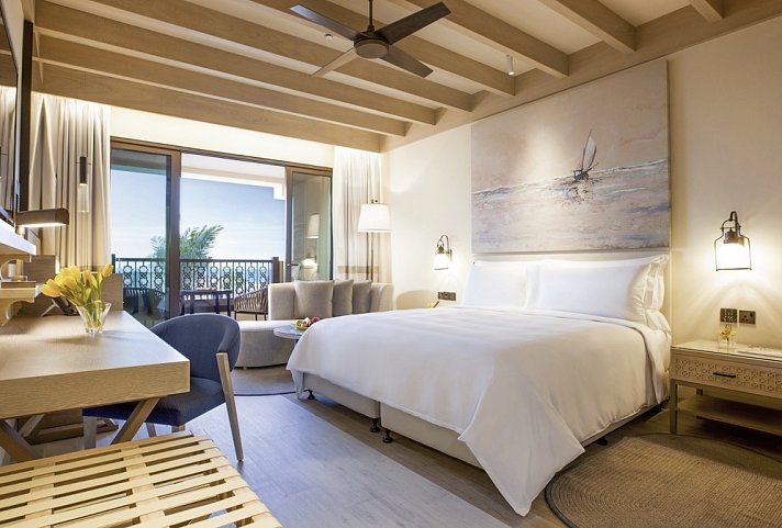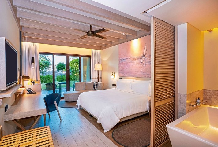 36-40 qm, behindertengerecht (Zimmer auf Anfrage buchbar), Bettwäsche, Handtücher und Matratzen aus 100% Bio-Baumwolle, Schreibtisch, Dusche, Badewanne, Regendusche, WC, Bademantel, Badeslipper, Haartrockner, Kosmetikspiegel, Holzboden, Klimaanlage, Minibar kostenpflichtig, Safe, TV, WLAN, Wasserkocher, Kaffee/Tee, Balkon, separater Check-in & Check-out, Zutritt zur Club-Lounge, Softdrinks in der Club-Lounge, Abends alkoholische Getränke in der Club-Lounge, nachmittags Kaffee/Tee und Gebäck, Snacks am Abend