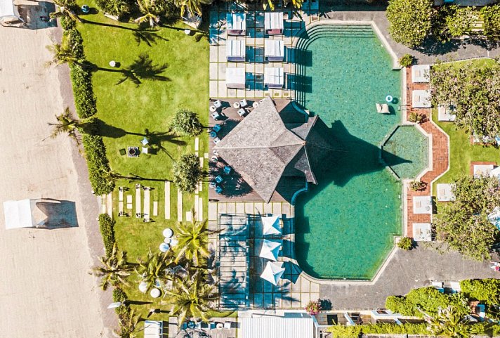 Das Boutique-Hotel liegt direkt am weißen Strand von Tanjung Benoa und überzeugt mit stylischem Ambiente. Bis in die Details ist die Ausstattung auf die Tradition Balis abgestimmt.