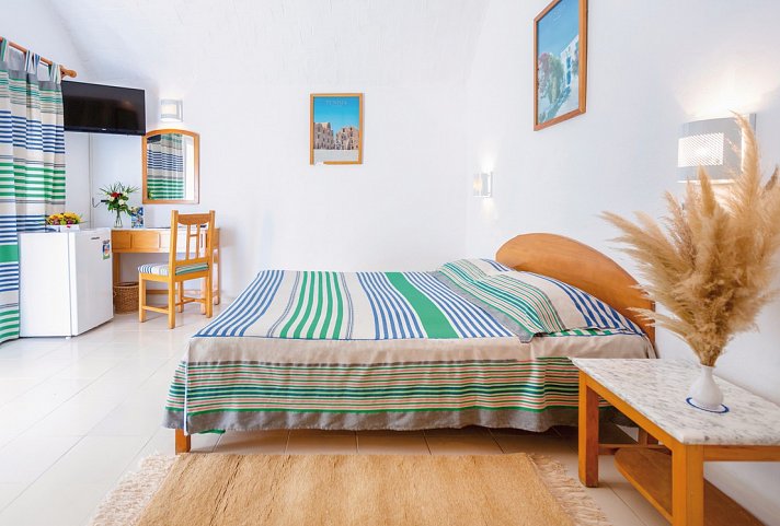 16-20 qm, Doppel, Standard, Gartenseite, Gartenblick, behindertengerecht (Zimmer auf Anfrage buchbar), rollstuhlgerecht (Zimmer auf Anfrage buchbar), kombinierter Wohn-/Schlafraum, Doppelbetten (1 Doppel- oder 2 Einzelbetten), Dusche oder Badewanne, WC, Fliesen, Klimaanlage, individuell regulierbar, ca. 1.5.-31.10., Heizung, Safe (kostenpflichtig), 1 TV (Sat-TV, deutschsprachiges Programm, landestypisches Programm, sonstiges Programm), Kühlschrank (kostenpflichtig), Terrasse, Bettwäschewechsel (3 x wöchentlich), Handtuchwechsel (täglich)