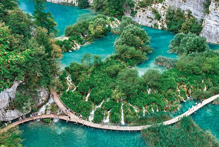 Den Nationalpark Plitvicer Seen (UNESCO-Weltnaturerbe) mit seinen 92 Wasserfällen erkunden