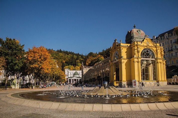 Ihr Urlaubsort Marienbad/Mariánske Lázne genießt weltweit einen hervorragenden Ruf als Kurort und gilt als „architektonische Perle“ der Tschechischen Republik. Der malerische Ort liegt in Westböhmen zwischen der bayerischen Grenze (Oberpfalz) und dem Kaiserwald (Slavkovský Les). Rund 40 Heilquellen, die reine Luft, prächtige Bauten und wunderschöne Parkanlagen prägen das Bild des mondänen Kurortes, der jährlich tausende Kur- und Gesundheitsurlauber verzaubert. Bereits im 17. Jahrhundert wussten die Menschen um die heilende Wirkung der Bodenschätze des damaligen Sumpfgebiets. Nach der Erforschung deren Heilkraft wurde aus der ehemaligen Sumpflandschaft nach und nach ein ansehnlicher Kurort mit herrlichen Kuranlagen und Bauten sowie einem gepflegten Kurpark. Nach einer grundlegenden Sanierung Ende des 20. Jahrhunderts erstrahlt Marienbad heute in neuem Glanz! Besonders sehenswert ist die „Singende Fontäne“ vor der 1889 im Stil des Neobarocks erbauten Kolonnade. Sie erklingt größtenteils jede ungerade Stunde. Schlendern Sie durch den Säulengang zu den Pavillons der Kreuz- und Karolinenquelle und genießen Sie ausgedehnte Spaziergänge durch die weitläufigen Kur- und Parkanlagen.