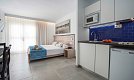 46-50 qm, Appartement, Premium, zentrale Lage, Poolblick, 1 separates Schlafzimmer, kombinierter Wohn-/Schlafraum, Sofabett, 1 Bad, Dusche, Haartrockner, Klimaanlage, Safe, 1 TV (Sat-TV), WLAN, Kochnische, Wasserkocher, Mikrowelle, Kaffeemaschine, Toaster, Kühlschrank, Balkon oder Terrasse (möbliert), bei Ankunft im Zimmer Wasser