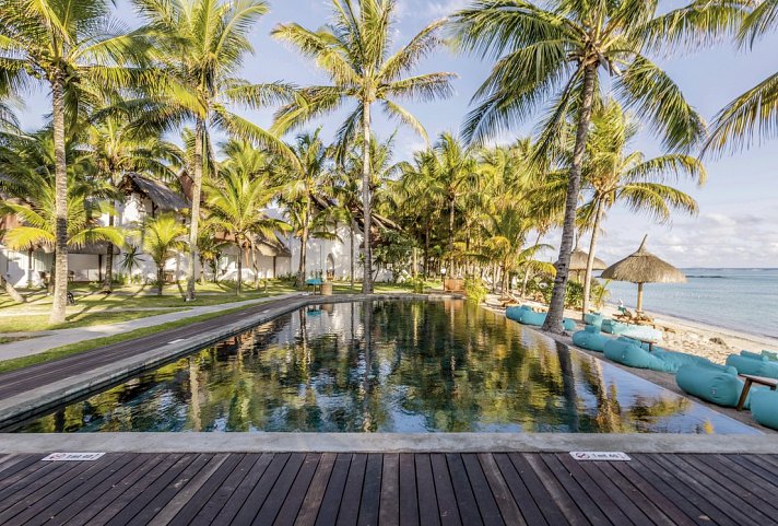 Das Luxus-Boutique-Hotel unmittelbar am Strand mit nur 59 Zimmern bietet eine malerische Aussicht an einem der berühmtesten Goldstrände von Mauritius.