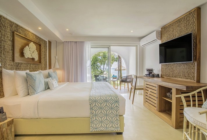 36-40 qm, Doppel, Deluxe, Meerblick, 1 Bad, Dusche, separates WC, Haartrockner, Klimaanlage, individuell regulierbar, Minibar kostenpflichtig, Safe, 1 TV (Sat-TV, Flachbildschirm), Espressomaschine, Kaffee/Tee, Balkon oder Terrasse (möbliert)