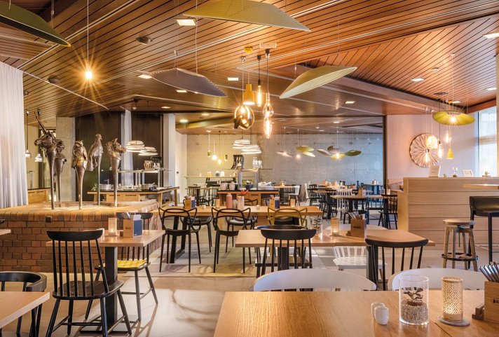 Recyclingbehälter im gesamten Hotel, Verwendung regionaler Baustoffe, Energieeffiziente Beleuchtung, Einsatz von Bewegungsmeldern und automatischen Timern