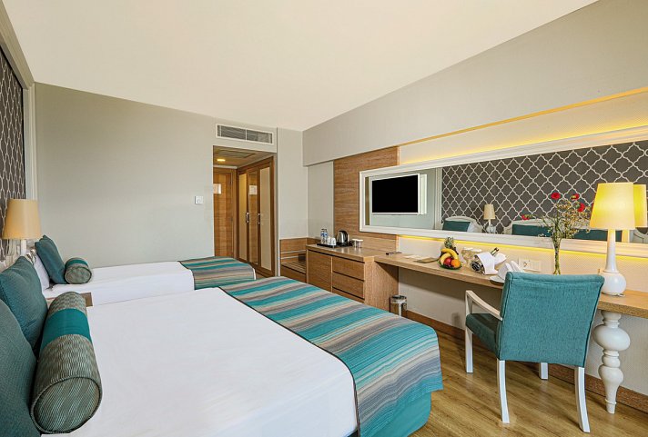 All Inclusive Plus: Frühstück (Buffet), Langschläferfrühstück bis 11 Uhr, Mittagessen (Buffet), Abendessen (Buffet), Getränke ganztägig kostenfrei (Softdrinks, Mineralwasser, Kaffee/Tee, Bier, Hauswein, Wasser), Snacks (ganztägig), Eis, Internationale Spirituosen kostenfrei (laut Getränkekarte) (ganztägig), Minibar (Softdrinks, Bier, Wasser)
