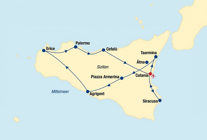 Eine Rundreise ist zweifellos eine tolle Methode, um die Vielfalt und Schönheit Siziliens in all ihren Facetten zu erleben. Ob Sie sich für eine selbstorganisierte Tour entscheiden oder die Bequemlichkeit einer geführten Rundreise bevorzugen – Sizilien offenbart seine Schätze auf verschiedensten Wegen, die durch antike Ruinen, lebhafte Städte, zu Küstenabschnitten und idyllischen Dörfern mit Geschichte führen. Beliebte Rundreisen umfassen die Erkundung des berühmten Val di Noto, bekannt für seine barocke Architektur, eine Entdeckungstour durch die antiken griechischen Tempel von Agrigent oder eine kulinarische Reise, die Sie durch die einzigartige sizilianische Küche führt. Viele Reisende wählen Palermo, die kulturell reiche Hauptstadt Siziliens, als Ausgangspunkt ihrer Reise, um sich dann in Richtung der atemberaubenden Cefalù-Küste, des Ätna oder der charmanten Stadt Taormina zu begeben. Auch mit REWE Reisen können Sie Ihre Sizilien-Rundreise starten: Eine Möglichkeit führt Sie von Catania aus in Städte wie Taormina, Palermo und Syrakus. Dabei besuchen Sie Naturparks und tauchen ein in die Welt der traditionellen Spezialitäten.