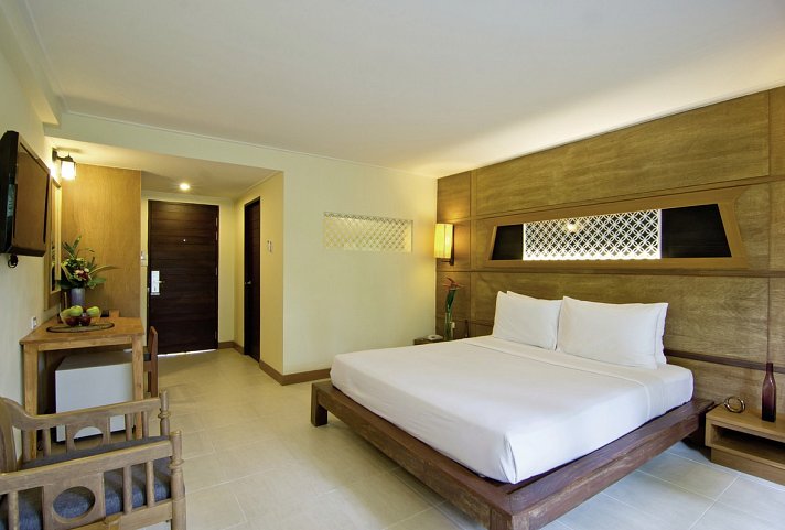 26-30 qm, Bungalow, Superior, Gartenseite, Gartenblick, Nichtraucher, Schreibtisch, Dusche, Handbrause, Haartrockner, Klimaanlage, Minibar kostenpflichtig, Safe, TV (Flachbildschirm), Wasserkocher, Kaffee/Tee, Balkon, 24-h-Zimmerservice