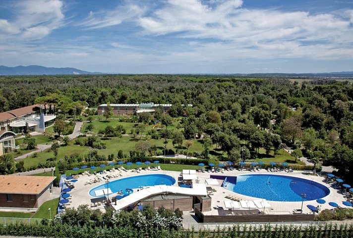 Eine riesige Parkanlage, zweistöckige Villen und ein herrlicher Strand mit leichten Sanddünen: Das Resort in der toskanischen Provinz Pisa bietet ideale Bedingungen für einen unvergesslichen Urlaub.