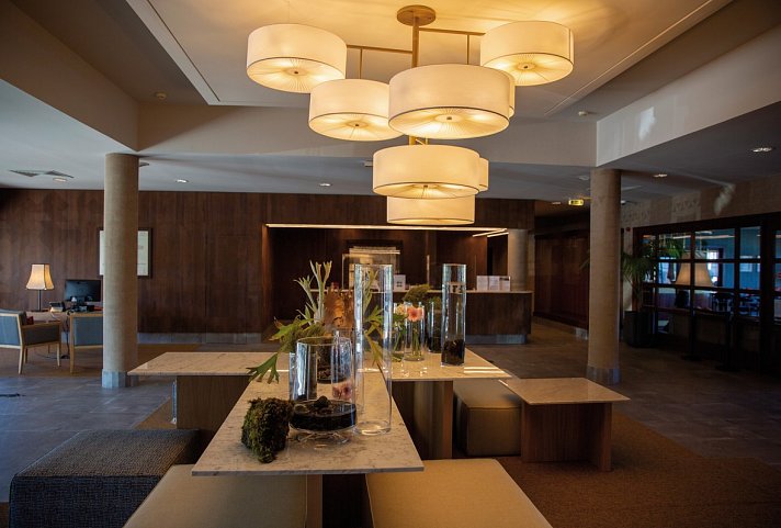 Recyclingbehälter im gesamten Hotel, Verwendung regionaler Baustoffe, Energieeffiziente Beleuchtung, Einsatz von Bewegungsmeldern und automatischen Timern