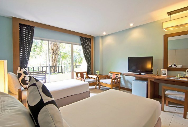 31-35 qm, Doppel, Superior, Gartenblick, Nichtraucher, Sitzecke, Schreibtisch, Dusche oder Badewanne, Handbrause, Haartrockner, Klimaanlage, individuell regulierbar, Korridor/Flur, Minibar kostenpflichtig, Safe, TV (Kabel-TV, deutschsprachiges Programm, landestypisches Programm), Balkon oder Terrasse