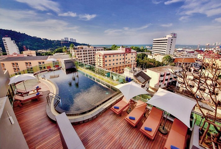 Trendiges Design, moderner Komfort und seine Lage nahe der Walking Street machen das Hotel ideal für Gäste, die im Urlaub etwas erleben möchten. Entspannung gibt’s im Pool auf dem Dach – Aussicht inklusive!