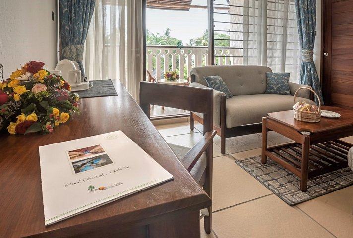 Doppel, Superior, Gartenblick, Bettwäsche, Handtücher und Matratzen aus 100% Bio-Baumwolle, Sitzecke, 2 Doppelbetten (Queensize), Dusche, bodengleiche Dusche, WC, Haartrockner, Klimaanlage, Safe, Bügeleisen, TV (Sat-TV), WLAN, Wasserkocher, Kaffee/Tee, Kühlschrank, Balkon