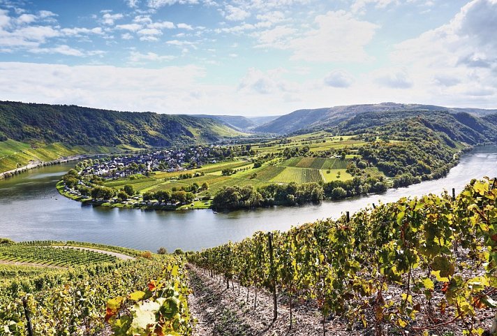 Direkt am Moselufer, zwischen Cochem (ca. 60 km) und Trier (ca. 45), begrüßt Sie der idyllisch gelegene und sonnenverwöhnte Weinort Wintrich. Umgeben von der hügeligen Landschaft mit Weinreben, weiten Wäldern und an einer ausgedehnten Moselschleife gelegen, erwarten Sie hier abwechslungsreise Urlaubstage vor einer traumhaften Kulisse an der Mittelmosel. Das kilometerlange Wegenetz lädt zu gemütlichen Spaziergängen oder auch zu ausgedehnten Wanderungen ein. Erkunden Sie die umliegende Natur direkt ab Wintrich auf dem „Herrgotts Wanderweg“, dem „Kasholzer Weg“ oder „Im Kastanienwäldchen“. Durch Weinberge, Wald und Wiesen gelangen Sie zu herrlichen Aussichtspunkten, vorbei an gemütlichen Weingütern und romantischen Dörfern mit moselfränkischen Fachwerk- und Bruchsteinhäusern. Ihr Urlaubsort ist auch für seine „Passionsspiele“ bekannt, die alle 5 Jahre in der Wintricher Kirche aufgeführt werden. Urige Weinstuben mit zahlreichen Spitzenweinen aus regionalem Anbau laden zwischen ihren Erkundungstouren zur Einkehr ein. Einen Ausflug lohnen das benachbarte Winzerstädtchen Bernkastel-Kues (ca. 10 km) mit seiner zauberhaften Fachwerk-Altstadt, dem mittelalterlichen Marktplatz und dem Zylinderhaus Museum für Oldtimer und Technik sowie die einstige Römer-Stadt Trier mit ihrer weltberühmten Porta Nigra. Freuen Sie sich auf abwechslungsreiche Urlaubstage im romantischen Moseltal!