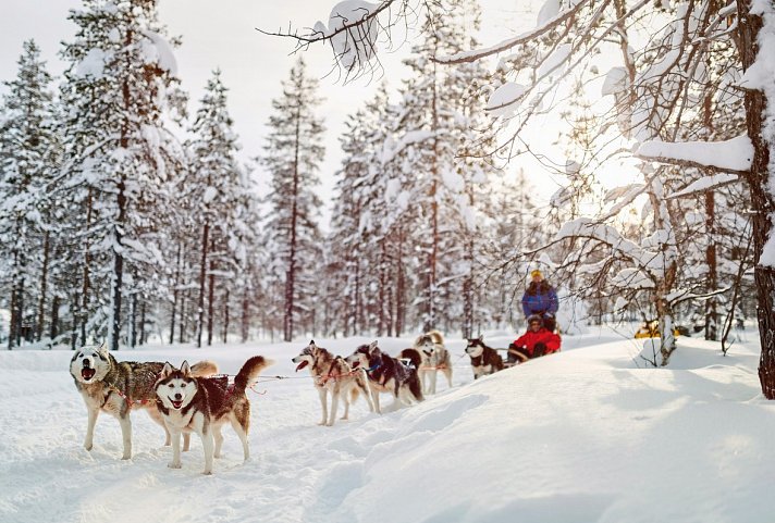 Heute Vormittag lernen Sie die Huskys kennen, die Sie bereits freudig erwarten. Sie unternehmen eine unvergessliche Schlittenfahrt durch die wunderschöne verschneite Landschaft. Die liebenswerten Huskys sind die besten Begleiter, denn sie sind an die klimatischen Bedingungen gewöhnt und lieben den Schnee. Sie selbst sitzen im Schlitten, der vom Musher gesteuert wird. Genießen Sie die rasante Fahrt und die arktische Natur um Sie herum. Unterwegs legen Sie eine Pause in einem traditionellen Sami-Zelt (Lavvu) ein und genießen einen samischen Snack. Dauer ca. 2,5 Std. (Frühstück)