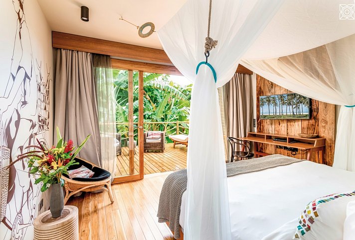 61-70 qm, Bungalow, 1 Bad, Dusche, Außendusche, WC, Bademantel, Haartrockner, Klimaanlage, individuell regulierbar, Minibar kostenpflichtig, Safe, 1 TV (Sat-TV, Flachbildschirm), DVD-Player, WLAN, Wasserkocher, Kaffee/Tee, Terrasse (möbliert), Anzahl Zimmer: 33