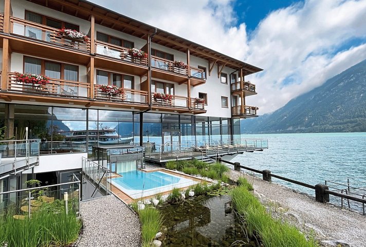 Saunabereich: Bio-Sauna, Finnische Sauna, Infrarotsauna, Dampfbad, Tiroler Schwitzstube, Panoramasauna mit Blick auf den Achensee
