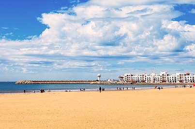 Der beliebte Badeort Agadir liegt im Süden Marokkos direkt am Atlantischen Ozean. Er verfügt über einen eigenen Flughafen, der von vielen deutschen Städten aus per Direktflug erreichbar ist – unter anderem von Berlin, Köln und Frankfurt. Die Flugzeit beträgt zwischen vier und fünf Stunden. Alternativ können Sie im Agadir-Urlaub mit REWE Reisen auch die Flughäfen von Marrakesch oder Essaouira ansteuern. Nach dem Transfer mit dem Bus, welcher rund drei Stunden dauert, erwartet Sie dann eine entspannte Auszeit unter Palmen.