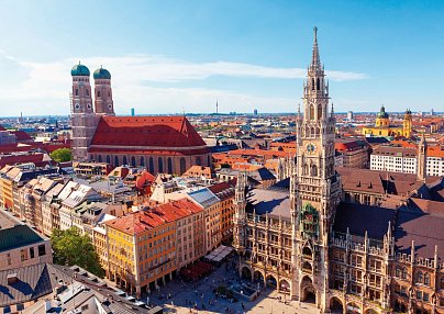 Eine Reise in Bayerns Landeshauptstadt München wird Sie begeistern mit einer reizvollen Mischung aus Tradition und Moderne. Die Metropole in Süddeutschland begrüßt Sie am Ufer der Isar nördlich der Alpen und ist weltweit für ihre hohe Lebensqualität bekannt. So lockt München mit einem vielfältigen Freizeitangebot, historischen Sehenswürdigkeiten, weitläufigen Parkanlagen und fantastischen Shoppingmöglichkeiten. Darüber hinaus ist die Millionenstadt berühmt für das jährlich zelebrierte Oktoberfest und die Vielzahl gemütlicher Biergärten, in denen die Einwohner gerne den Feierabend ausklingen lassen. Ein guter Startpunkt für Ihren Urlaub in München ist der Marienplatz im Herzen der Altstadt. Nordwestlich davon erhebt sich eines der Wahrzeichen der Landeshauptstadt: die Frauenkirche. Die Kirche im spätgotischen Stil mit ihren zwei typischen Zwiebeltürmen wurde schon 1525 erbaut. Architekturkenner werden sich auf für das Nationaltheater am Max-Joseph-Platz interessieren. Dies ist ein wichtiges Beispiel für den europäischen Klassizismus und ähnelt äußerlich einem griechischen Tempel. Auf seiner großen Bühne finden die Veranstaltungen des Staatsballetts, der Staatsoper und des Bayerischen Staatsorchesters statt.