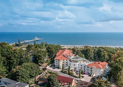 Das Kaiserbad Heringsdorf ist nicht nur für seine Gründerzeit-Villen bekannt, sondern auch für die mit 508 Metern längste Seebrücke Deutschlands. Durchschnittlich acht Sonnenstunden am Tag erwarten Sie in Ihrem Urlaub auf Usedom im Sommer. Dazu kann die Ostsee bis zu 18 °C warm werden. Es lohnt sich also, ein Hotel in Heringsdorf in Strandnähe zu buchen.