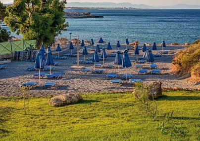 Die Insel des Sonnengottes Helios, Rhodos, macht ihrem Schöpfer alle Ehre: An über 300 Tagen im Jahr erwärmen die Sonnenstrahlen das fruchtbare Eiland und verführen zu einem Sprung in das azurblaue Mittelmeer. Goldgelbe Strände und Kies-Badebuchten erstrecken sich an den Küsten, während im Hintergrund leuchtend weiß verputzte Häuser mit blauen Fensterrahmen die Szenerie prägen.